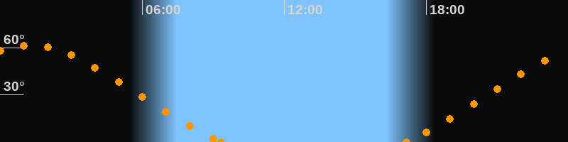 Höchster Stand (Kulmination)01:16 Uhr (h = 61.6°)