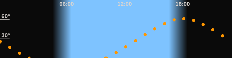 Höchster Stand (Kulmination)18:55 Uhr (h = 61.2°)