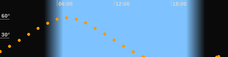 Höchster Stand (Kulmination)07:00 Uhr (h = 62.2°)