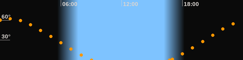 Höchster Stand (Kulmination)00:51 Uhr (h = 62.1°)