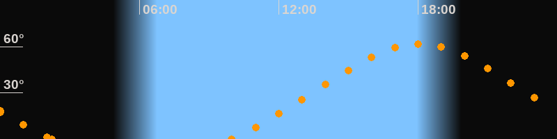 Höchster Stand (Kulmination)18:04 Uhr (h = 61.8°)