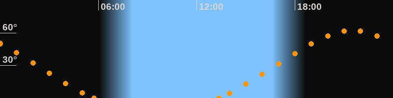 Höchster Stand (Kulmination)21:30 Uhr (h = 62.4°)