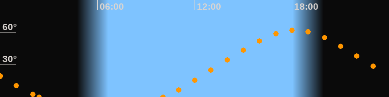 Höchster Stand (Kulmination)18:11 Uhr (h = 62.3°)
