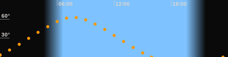 Höchster Stand (Kulmination)07:43 Uhr (h = 62.8°)