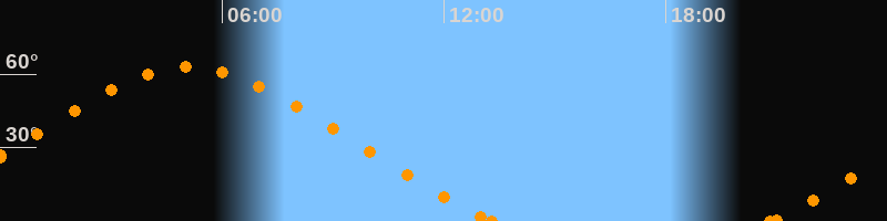 Höchster Stand (Kulmination)05:06 Uhr (h = 62.8°)