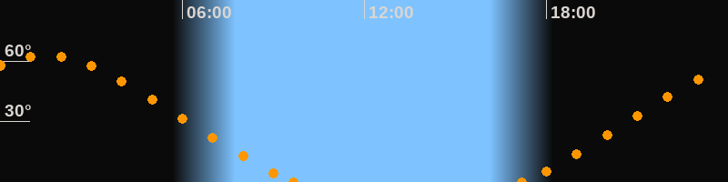 Höchster Stand (Kulmination)01:28 Uhr (h = 62.8°)