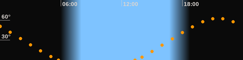 Höchster Stand (Kulmination)21:30 Uhr (h = 62.7°)