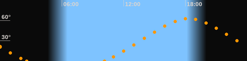 Höchster Stand (Kulmination)18:19 Uhr (h = 62.7°)
