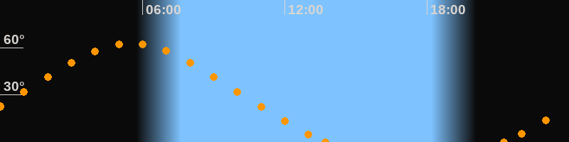Höchster Stand (Kulmination)05:30 Uhr (h = 62.9°)