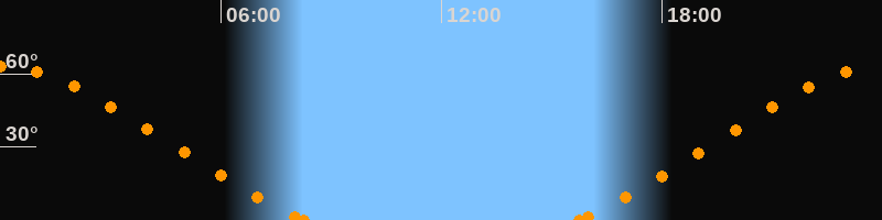 Höchster Stand (Kulmination)23:58 Uhr (h = 62.9°)