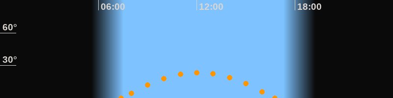 Höchster Stand (Kulmination)12:05 Uhr (h = 23.6°)