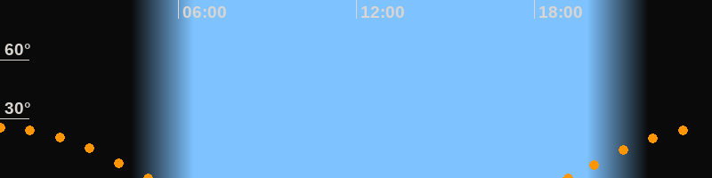 Höchster Stand (Kulmination)00:01 Uhr (h = 25.6°)