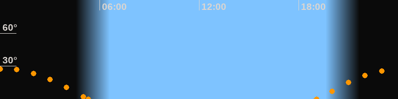 Höchster Stand (Kulmination)00:10 Uhr (h = 27.7°)