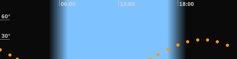 Höchster Stand (Kulmination)20:27 Uhr (h = 29.6°)