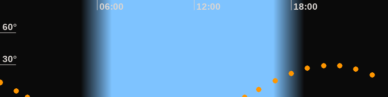 Höchster Stand (Kulmination)20:23 Uhr (h = 29.6°)