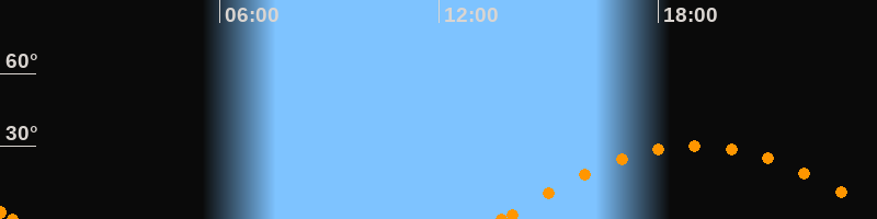 Höchster Stand (Kulmination)19:01 Uhr (h = 30.3°)