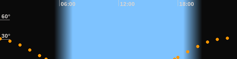 Höchster Stand (Kulmination)23:07 Uhr (h = 32.1°)