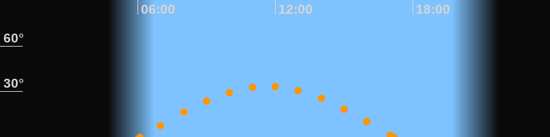 Höchster Stand (Kulmination)11:38 Uhr (h = 33.3°)