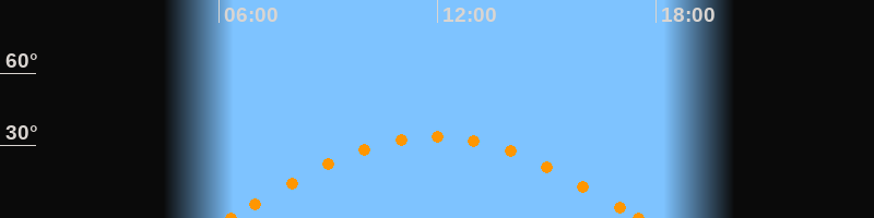 Höchster Stand (Kulmination)11:55 Uhr (h = 33.8°)