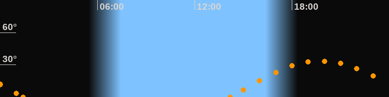 Höchster Stand (Kulmination)19:46 Uhr (h = 33.6°)