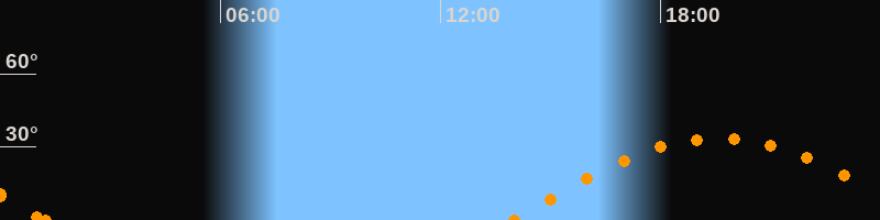 Höchster Stand (Kulmination)19:34 Uhr (h = 33.6°)