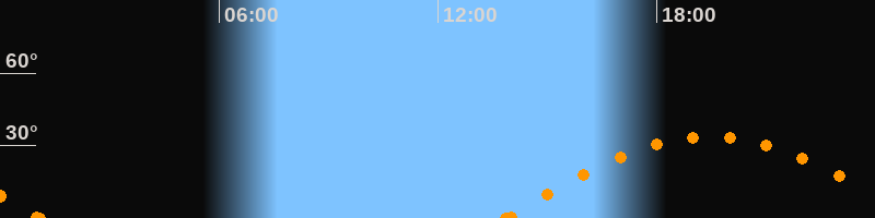 Höchster Stand (Kulmination)19:26 Uhr (h = 33.5°)