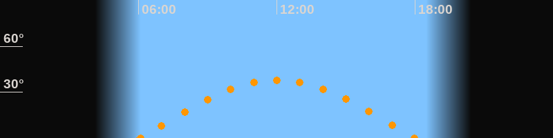 Höchster Stand (Kulmination)12:01 Uhr (h = 38°)