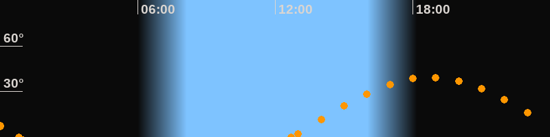 Höchster Stand (Kulmination)18:45 Uhr (h = 39.4°)