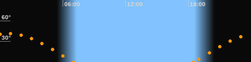 Höchster Stand (Kulmination)00:43 Uhr (h = 41.6°)