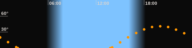 Höchster Stand (Kulmination)19:58 Uhr (h = 41.1°)