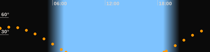 Höchster Stand (Kulmination)01:06 Uhr (h = 43.3°)