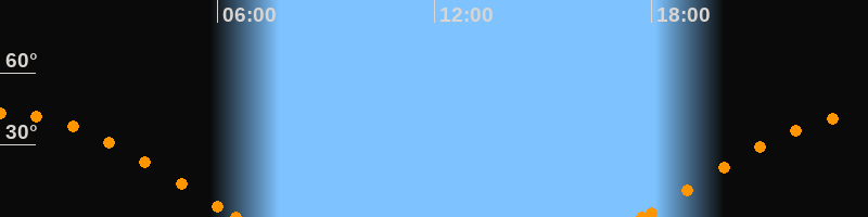 Höchster Stand (Kulmination)00:05 Uhr (h = 43.1°)