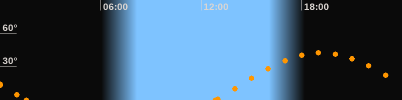 Höchster Stand (Kulmination)19:10 Uhr (h = 42.8°)
