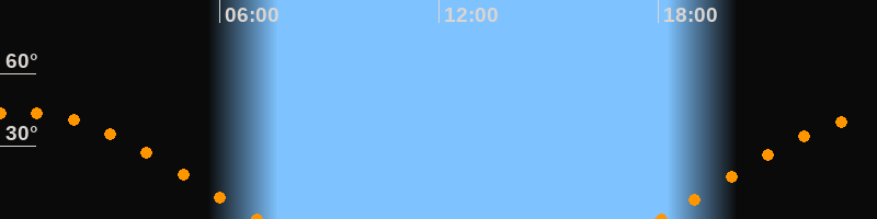 Höchster Stand (Kulmination)00:31 Uhr (h = 44°)