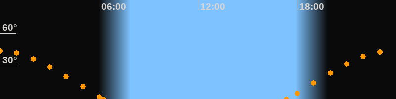 Höchster Stand (Kulmination)23:47 Uhr (h = 43.9°)