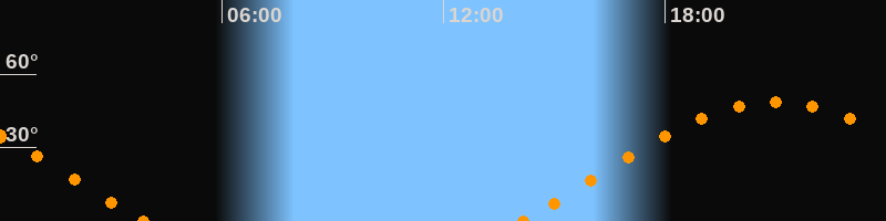 Höchster Stand (Kulmination)20:59 Uhr (h = 48.6°)