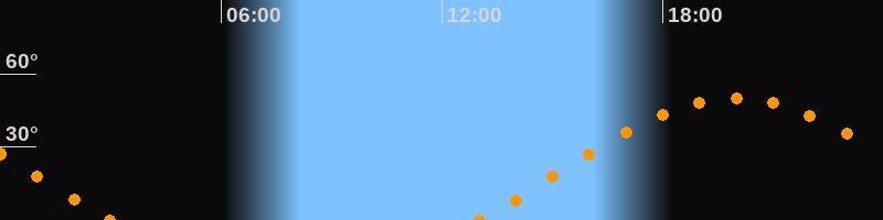 Höchster Stand (Kulmination)19:58 Uhr (h = 50°)