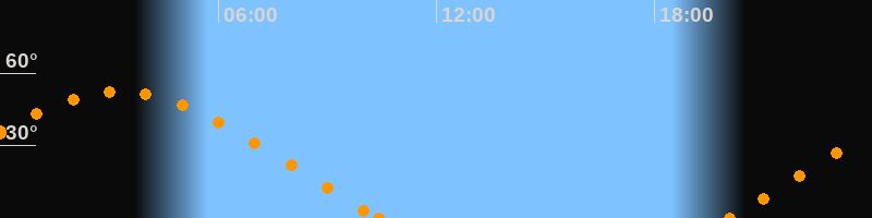Höchster Stand (Kulmination)03:16 Uhr (h = 52.3°)