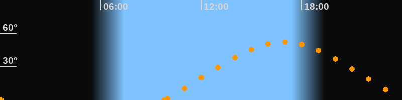 Höchster Stand (Kulmination)16:55 Uhr (h = 52.3°)