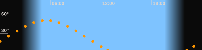 Höchster Stand (Kulmination)05:30 Uhr (h = 53.7°)
