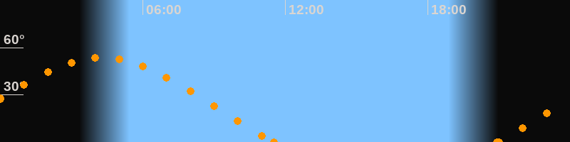 Aufgang20:55 Uhr im Nordosten (αAz = 66.1°)
