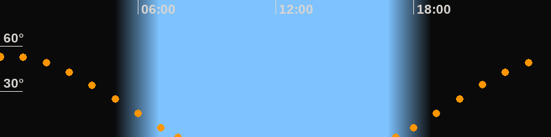 Höchster Stand (Kulmination)00:27 Uhr (h = 53.3°)