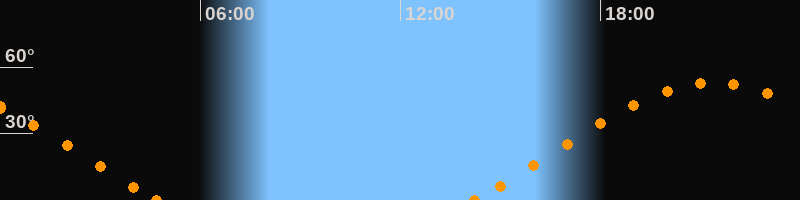 Aufgang14:13 Uhr im Nordosten (αAz = 67.3°)