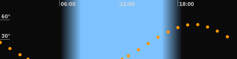 Höchster Stand (Kulmination)19:34 Uhr (h = 52.9°)