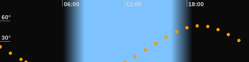 Höchster Stand (Kulmination)19:14 Uhr (h = 52.9°)