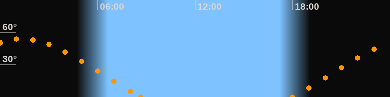 Höchster Stand (Kulmination)01:21 Uhr (h = 54.1°)