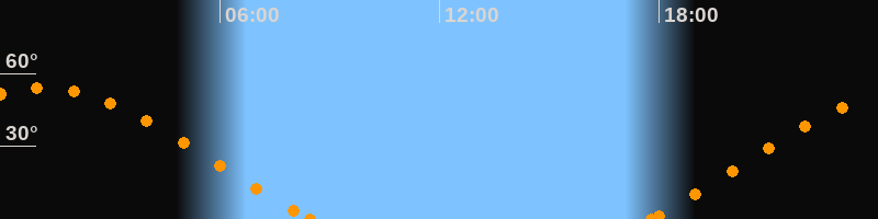 Höchster Stand (Kulmination)01:09 Uhr (h = 54.1°)
