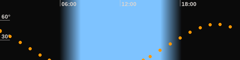 Höchster Stand (Kulmination)21:35 Uhr (h = 53.7°)