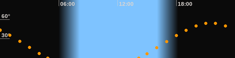 Höchster Stand (Kulmination)21:29 Uhr (h = 54.3°)