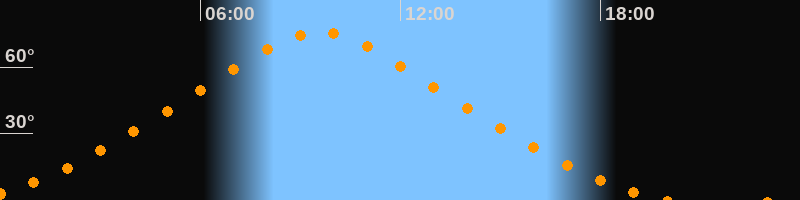Höchster Stand (Kulmination)09:35 Uhr (h = 75,7°)